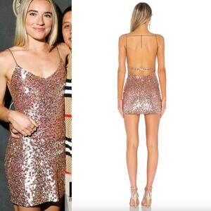 h:ours | NWT Vega Dress in Quartz Rose Gold Sequined Open Back Mini Dress L