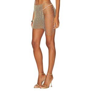 h:ours Rema Mini Skirt in Gold Medium New Womens Chainmail