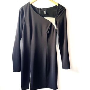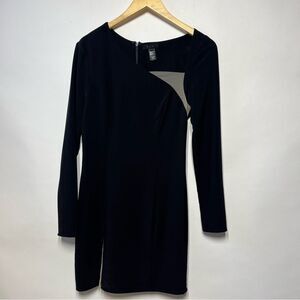 Self: 94% poly, 6% elastane.Lining: 90% nylon, 10% elastane.Mesh: 100% nylon. Dry clean only. Fully lined. Crepe fabric. Neckline and hem mesh inset. Hidden back zipper