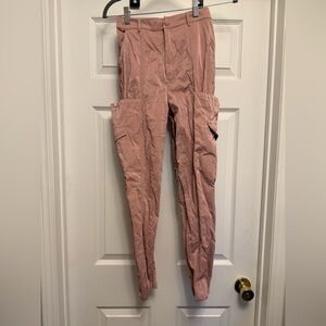 h:ours Wet Leather Pants Blush Pink Cargo Pockets Shiny Revolve Blogger XS $178
