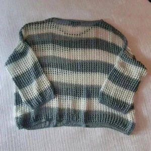 how.very.loved Women's Crochet knit blue + white striped pullover sweater | S/M