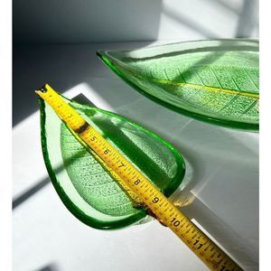🎉hp🎉vintage Art Glass Leaf Nesting Plates by Dynasty Gallery 14”&10 Green Gold