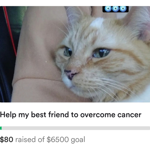Hi guys, my cat has been losing weight and I found out it's because he has cancer. He has to have a surgery to remove the tumor next week and time is of the essence. I just started a go fund me page for my sweet baby. Please if anyone is able to donate anything, it is greatly appreciated.