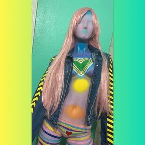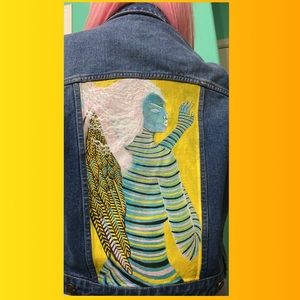 This Denim Jacket has an unique art piece In the back side of the jacket ,hand painted by the Artist CLAVEL AMBROSIO.