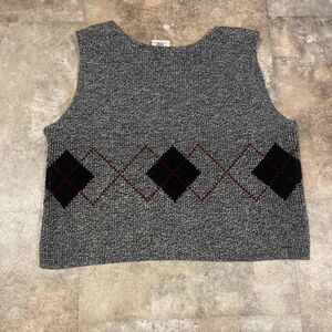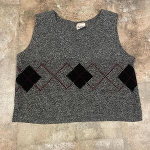huntington ridge vintage gray and black argyle cropped sweater vest tank. no size tag but listing as size large. see measurements. :)