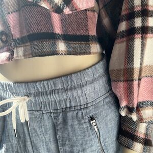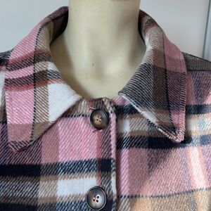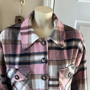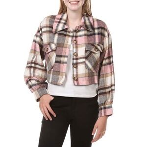 hyfve Pink Cream Tan Black Plaid Cropped Button Down Jacket L