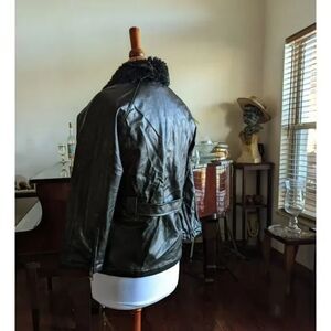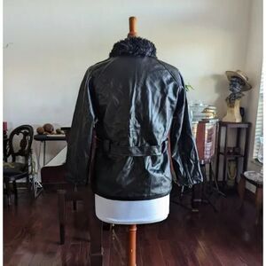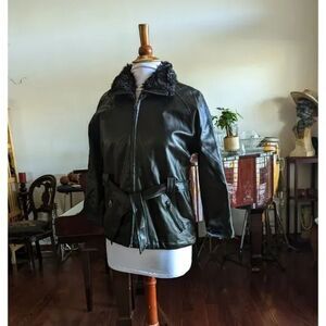 hype faux leather belted jacket w/ faux fur collar Sz M
