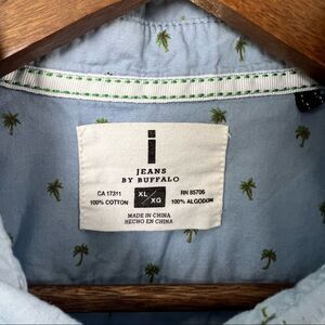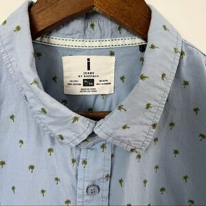i Jeans by Buffalo Button Up Top Palm Trees Design Short Sleeves Men's Size XL
