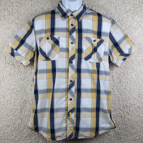 i Jeans by Buffalo* Men's Short Sleeve Button Down Curved Hem Shirt~ Size Large