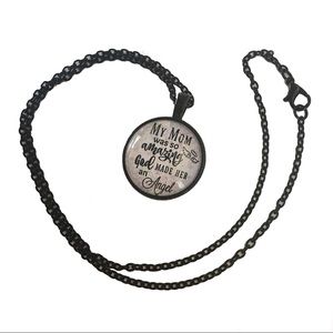 Beautiful and meaningful necklace. Metal is zinc alloy and about 20”. Some people even hang these on their rear view mirrors. New in package.