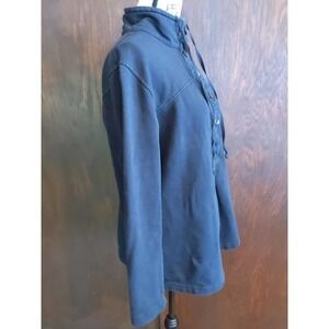 iCantoo button Tunic Drawstring Neck Long Sleeve Top Womens Medium Black FLAWS