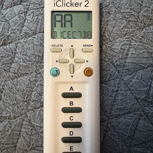 Enhance your presentations with the Turning Technologies Clicker. This white device is user-friendly and efficient, perfect for interactive sessions.