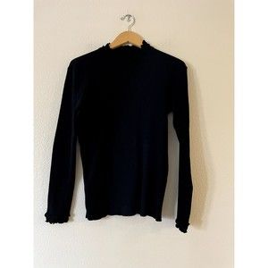 iClosam Womens Scalloped Turtleneck Sweater Size L Black Cable Knit Long Sleeve