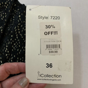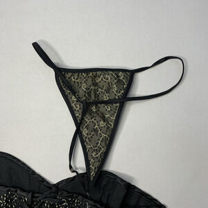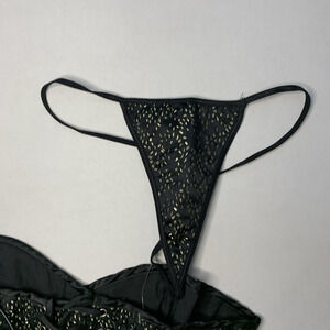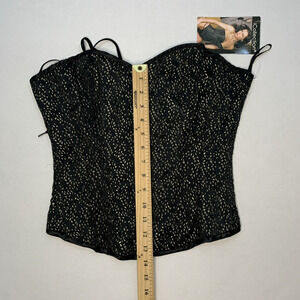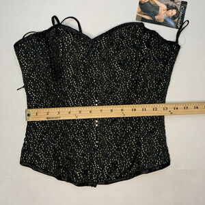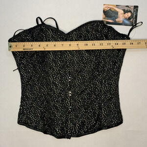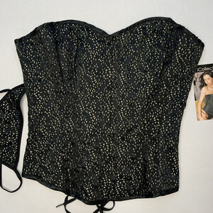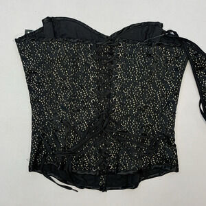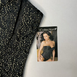 iCollection Boudior Lace Corset Thong Set Sz 36 Black Gold Brocade Pin Up Glam