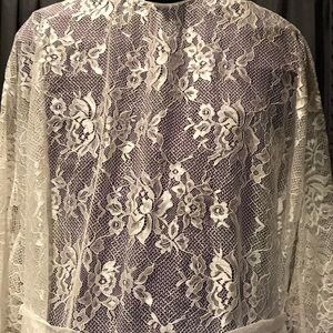 Elegant white lace robe. Intricate floral patterns. Perfect for layering.