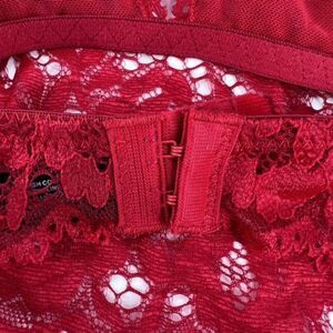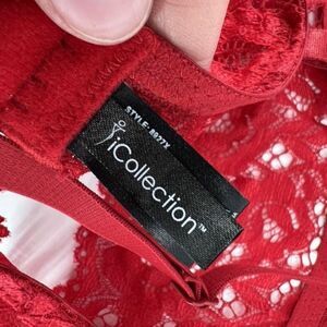 iCollection Women's Long Line Triangle All Over Floral Lace Bralette Red Size 3X