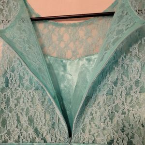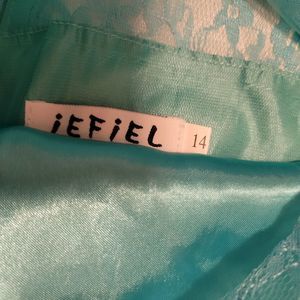 iEFiEL formal dress Turquoise Full Length w/lace Sz 12.