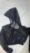 Stylish black mesh crop top. Features a hood and long sleeves. Purple iridescent sparkle on it. Perfect for layering. Rave! Worn 1 time, has been washed and sanitized.
