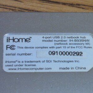 Good-conditioned iHome 4-port USB 2.0 Netbookhub. This device complies with Part 15 of the FCC rules