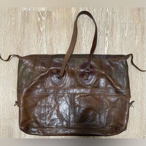 iL Bisonte / Barbara Bolan large brown leather tote style bag w/plaid interior
