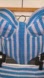 Chic bustier and pencil skirt with bold blue and white stripes. Perfect blend of tradition and style. Classic Kente midi skirt set created from a reflective silk shimmer