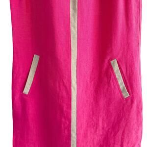 iLinen Bright Pink Sleeveless Linen Shift Dress With Gold Trim Size XS