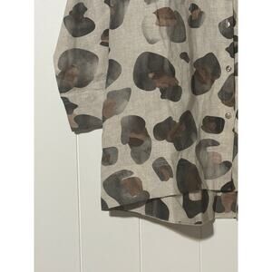 iLinen Lifestyle XL 100% Linen Blouse Made in Poland Leopard Animal Print Shirt