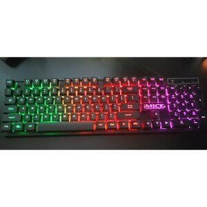 The iMice AK-600 wired keyboard features vibrant rainbow backlighting, 12 multimedia hotkeys, laser-engraved waterproof keycaps, and a durable 104 keys layout. Perfect for gaming and daily use with its cool backlight and double shot keycap design.