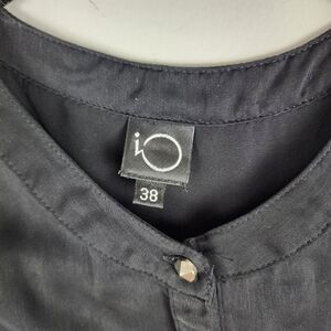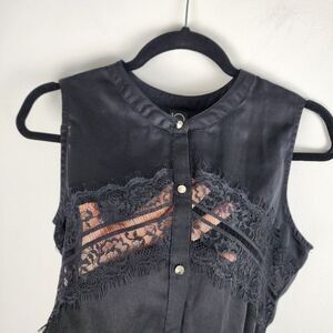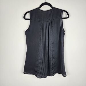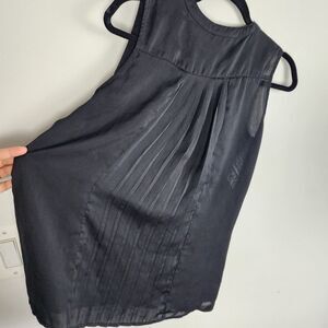 iO Black Silky Sleeveless Blouse with Lace Detail Pleated Back Button Up Top S