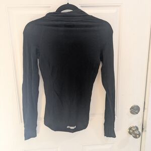 Stylish black long sleeve quarter zip. Features a zip-up front and a comfortable fit. Australian merino wool.