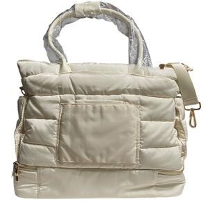 iPack Puffy Tote Bag OS Cream Travel Daily Use Practical Easy To Clean Nylon NWT