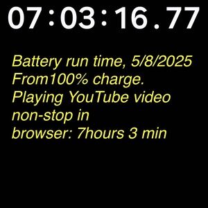 I used this sparingly for years in the sheet music stand on my piano, plugged into power. For this reason, the battery is still pretty decent, given its age. Certainly not as good as new, but it holds a charge for a while. I did a test and posted the results in the photos here: I made sure it was fully charged, unplugged it, and played a very long YouTube video in a web browser. I started a stopwatch timer on my phone when I pushed play. I made sure the screen would not shut off and let it run until the battery died. It played for seven hours and three minutes. I was surprised it played that long, but it really did! During more interactive use it will likely not last as long, but for its age, this is surprisingly good. Please note this iPad will not update past iOS 15. Apps requiring iOS 16 will not run on this iPad or any iPad of this generation. Most people use these for browser based activity, as did I, so that’s how I did the test and it worked beautifully. Please see the timer screenshot from my phone in the product pictures.
