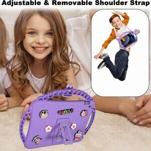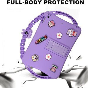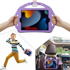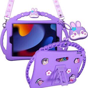 The iPad Mini 7th/6th Gen Kids Case is a shockproof protective shell designed specifically for Apple iPad mini models. This purple case features a cute bunny design and includes handles for easy carrying and handling by children. Made from silicone, it is impact-resistant and provides anti-scratch protection. Additionally, it comes with a pencil holder for convenience. The case is designed to be kid-friendly, making it a practical and safe option for young users who want to protect their devices.