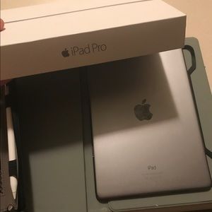 9.7 inch, 128Gb, barely used, comes with charger, charging case and also includes Apple Pencil