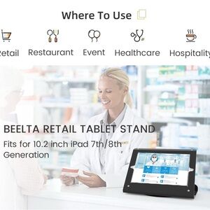 Tablet Kiosk POS Stand Compatible 10.2” iPad 7 8 9 Generation with 360 Swivel Base