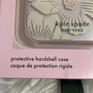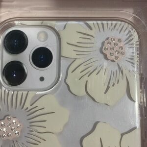Kate spade iPhone case for iPhone 11 Pro & iPhone XS/X clear protective hard shell case with off white flowers and pink/rhinestone center. New and unused. Packaging has some damage please see photos