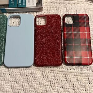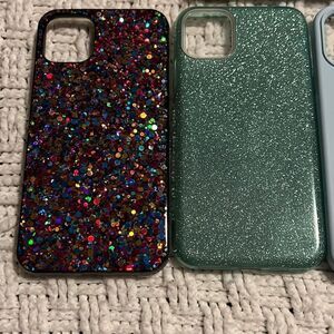 iPhone 11pro max cases 5 total sparkle glitter life proof, life proof case is new in box, other cases are snap on and are perfect. Multi color glitter case has some tiny stones missing on side but you can’t really tell.