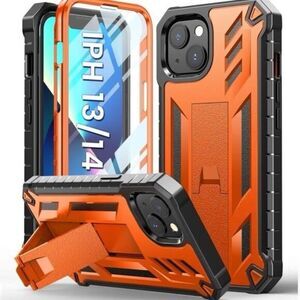 New iPhone 13 Case Protective Cover: iPhone 14 case Heavy Duty Military Grade Hard Protection Shock Proof Grip | Durable Dual-Layer Design iPhone 13-14 Phone Case with Built-in Kickstand Orange