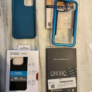 3 cases for iPhone 13 Pro Max - 1 brand new and 2 like new. Also 2 camera lens protectors - new.