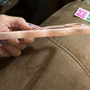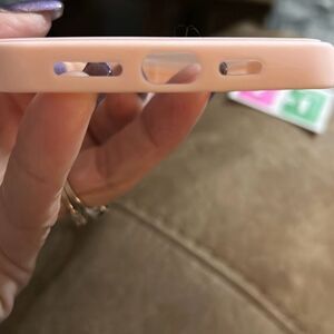 iPhone 14 Plus Case Clear Curly Wave Frame Shockproof Protective Cover Pink