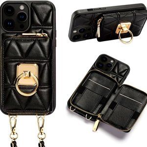 📱 iPhone 14 Pro Case Wallet Card Holder 360 Ring, Stand, Leather, Crossbody NWT
