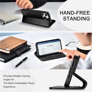 iPhone 14 Pro Max Case, Premium Handcrafted PU Leather Wallet Case, Wireless
