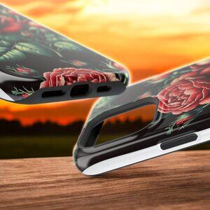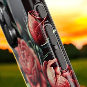 Make a bold statement with this stunning phone case featuring vibrant red roses against a sleek black background. Perfect for lovers of floral elegance, this case offers stylish protection with a touch of dramatic beauty.