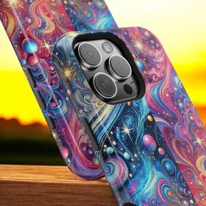 Elevate your phone with this stunning cosmic swirl phone case featuring a mesmerizing blend of colorful galaxies and shimmering stars. Perfect for space enthusiasts and art lovers, this case adds a touch of the universe while protecting your device in style.