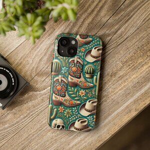 "Western Cowboy Phone Case - Floral Boots, Hats & Cactus Desert Design