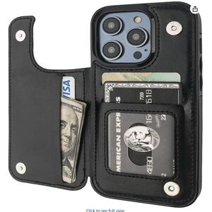 iPhone 14 Pro Wallet Case with Card Holder, PU Leather Kickstand Card Slots Case
