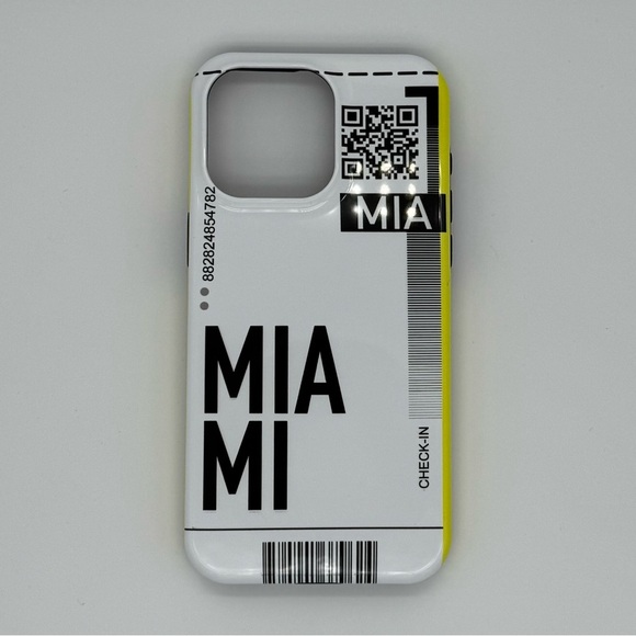 Protect your phone with this stylish Miami-themed case. Featuring a sleek white design with vibrant yellow accents, this case offers both style and durability.