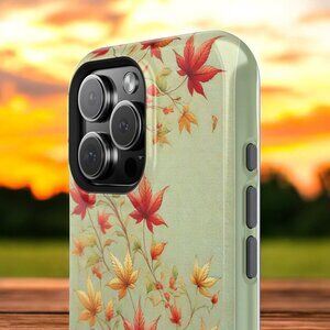Celebrate the beauty of fall with this phone case featuring delicate red and golden autumn leaves on a soft green background. Perfect for nature lovers and those who adore seasonal aesthetics, this case offers both style and durable protection.