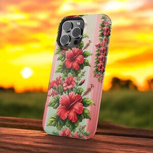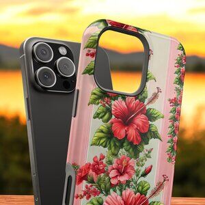 Embrace tropical beauty with this vibrant hibiscus floral phone case featuring bold red flowers and lush green leaves. Perfect for nature lovers and tropical vibes enthusiasts, this case provides durable protection with a stunning design.
