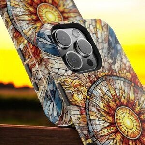 Navigate your day with this captivating stained glass-inspired phone case featuring a radiant sun and intricate compass design. Perfect for adventure lovers and art enthusiasts, this case adds a bold and unique touch to your phone.
